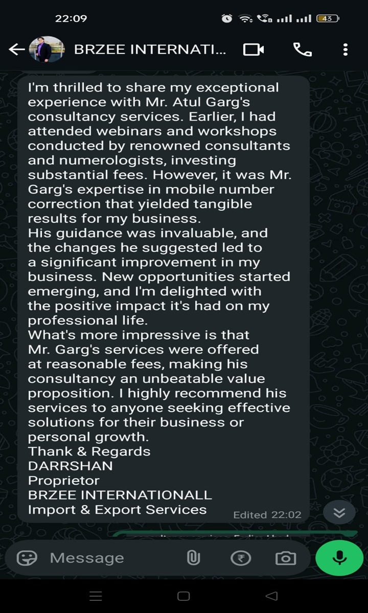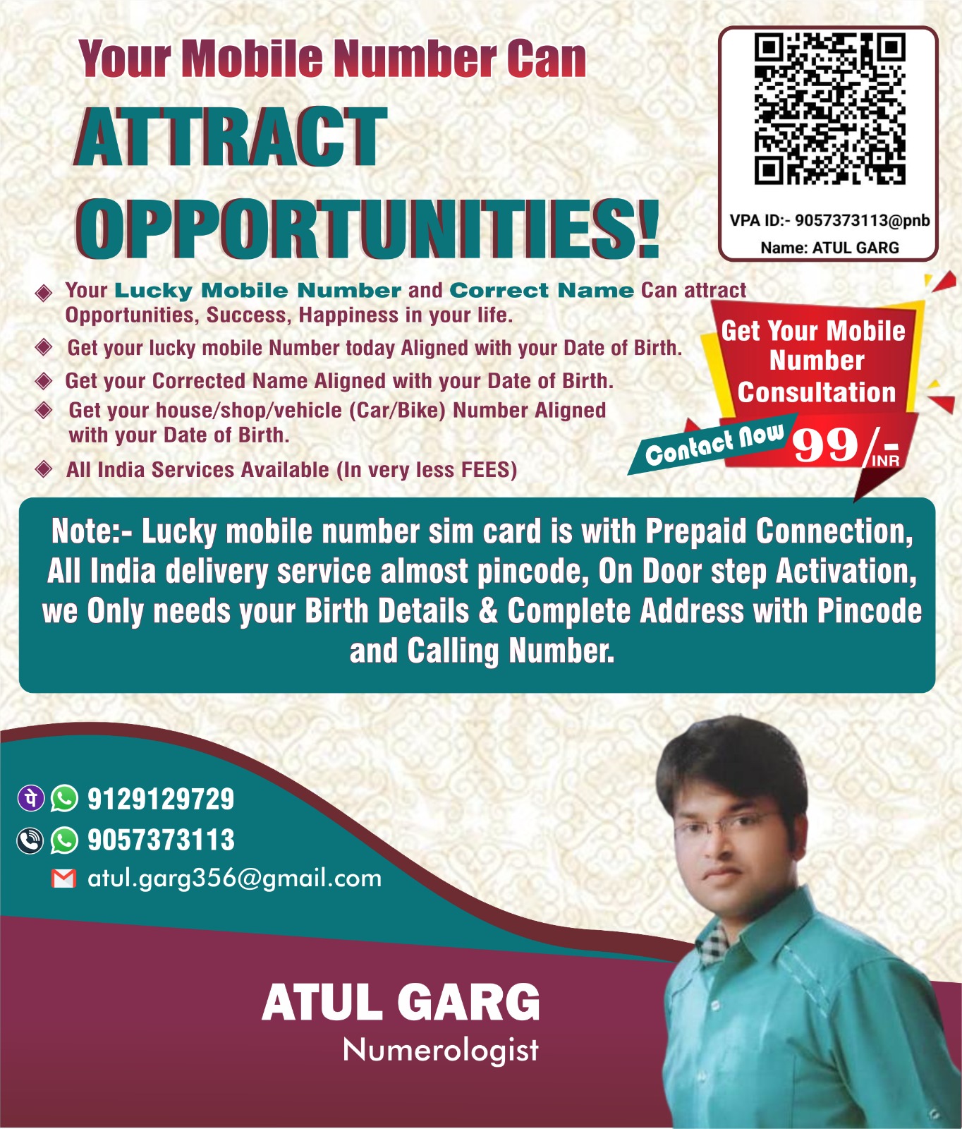 Dr. ATUL A GARG mission is to make mobile numerology accessible and actionable, showing how aligning your mobile number with your Date of Birth can bring life-changing results. Take his Mobile Numerology Services which is backed by scientific knowledge to find your lucky mobile number and transform your life starting today!